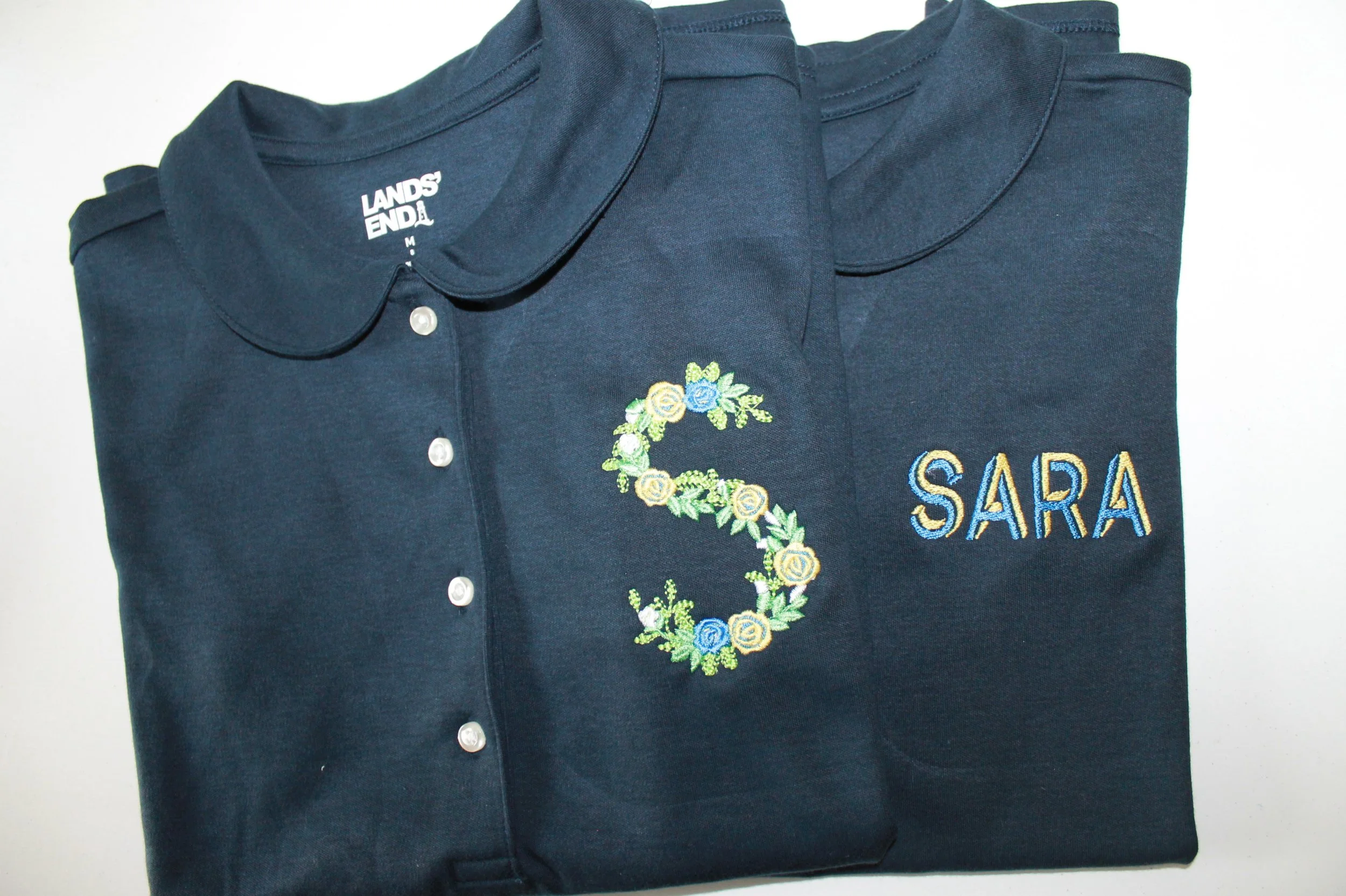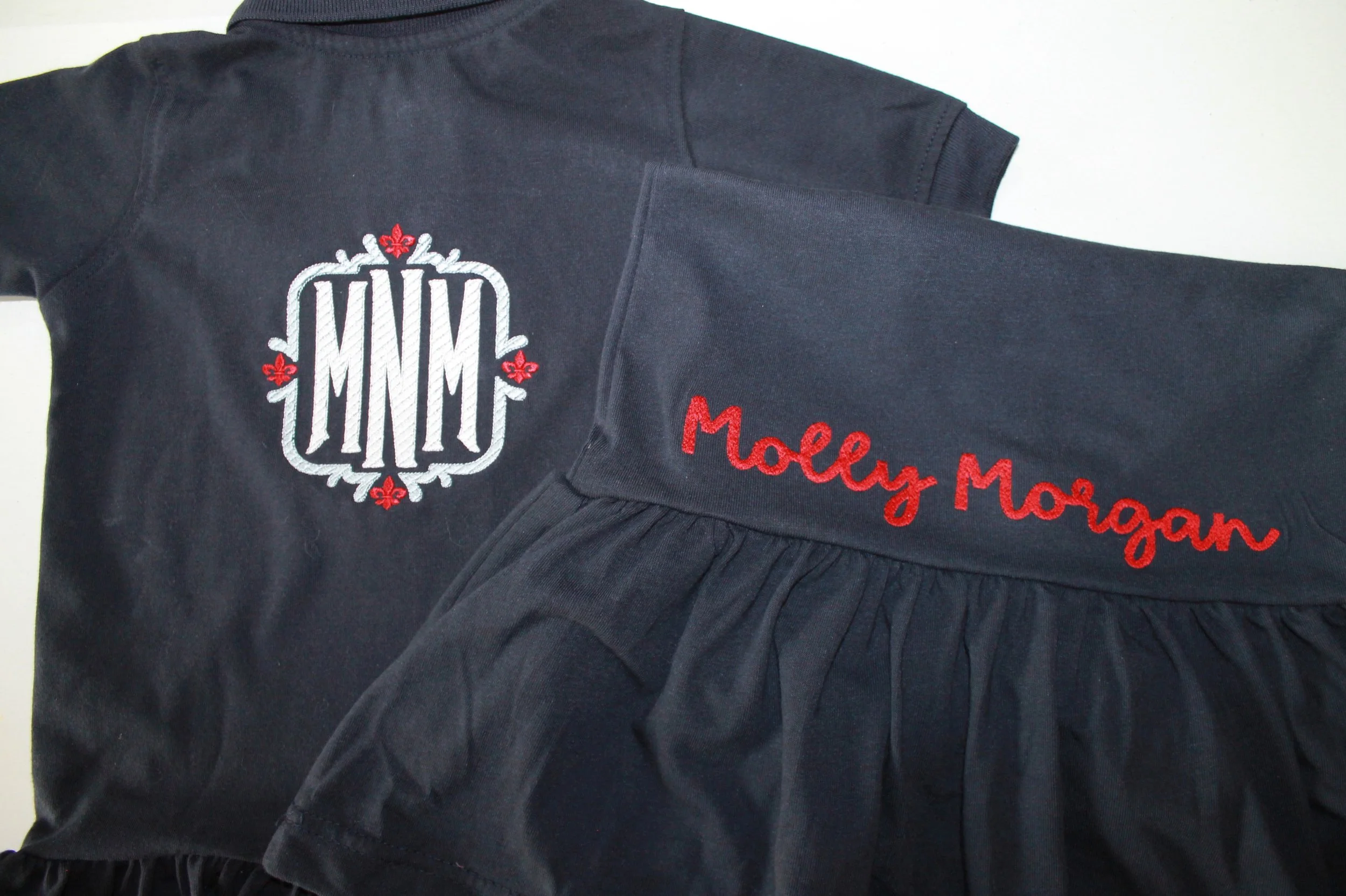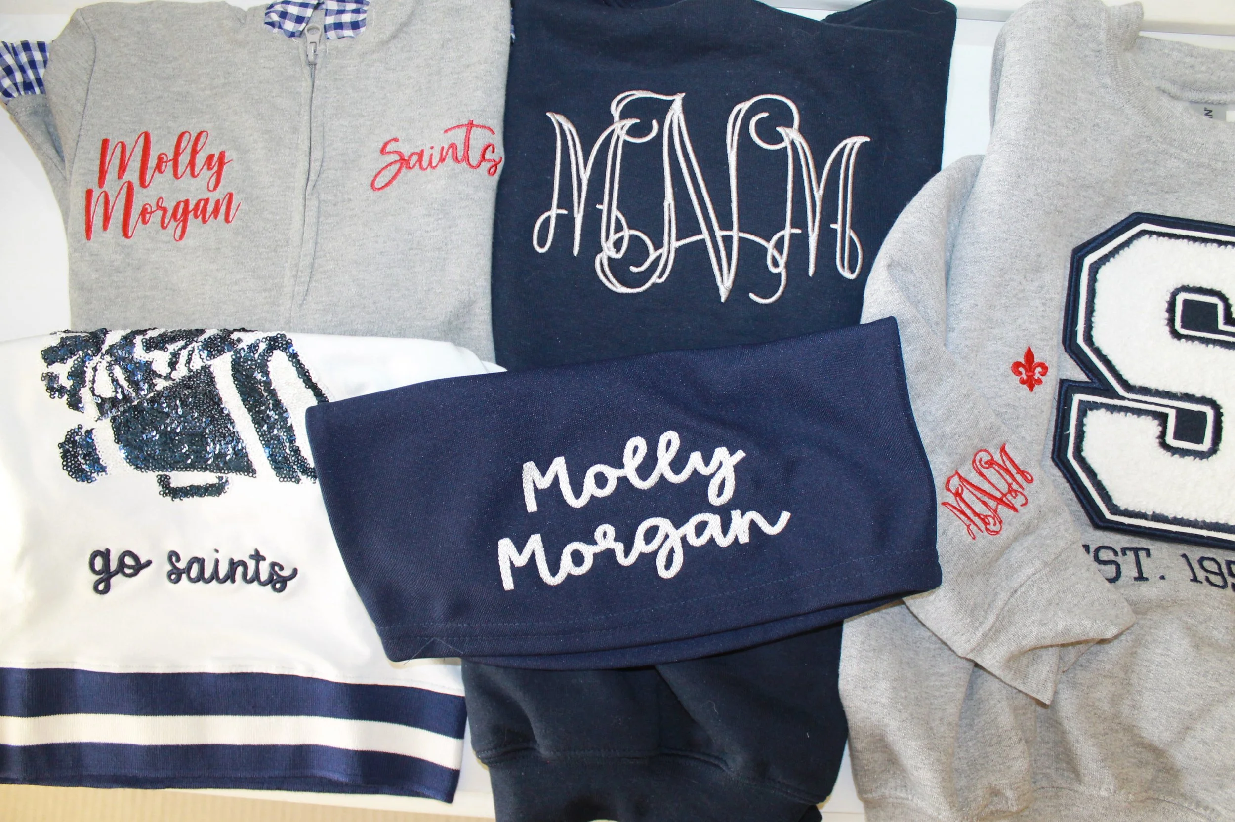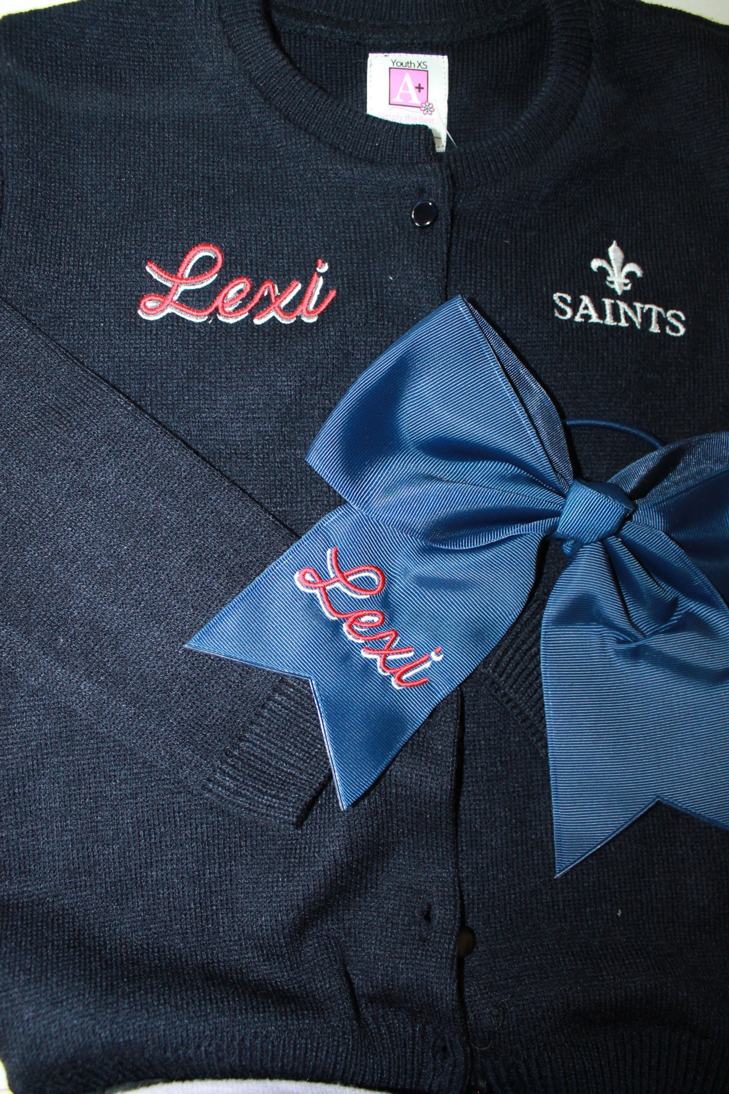 My daughters, Katie and Kristie graduated from All Saints’. So naturally, the majority of our orders are from ASES. But of course, we welcome all clients and are familiar with most school’s guidelines. The majority of our fonts stitch well onto uniforms. Orders are first come, first serve. Contact us for pricing.